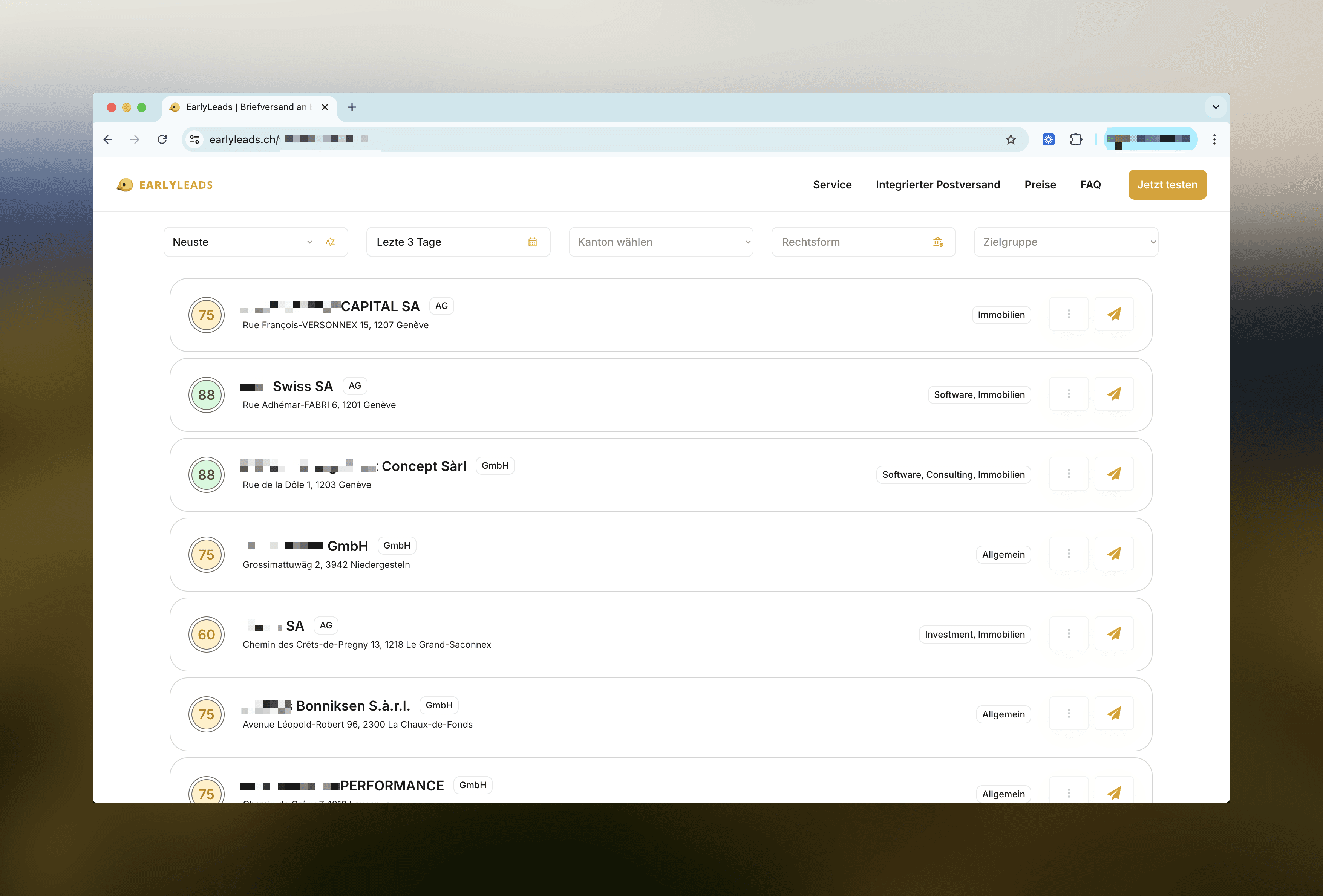 EarlyLeads.ch helps businesses reach newly founded companies at exactly the right moment.